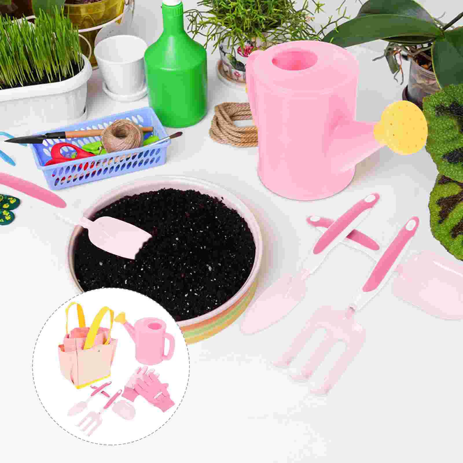 1 set Pink Planting Tools Set Kids Garden Tools Small Shovel Rake Watering Can Storage Basket Child Gardening Set Mini Spade