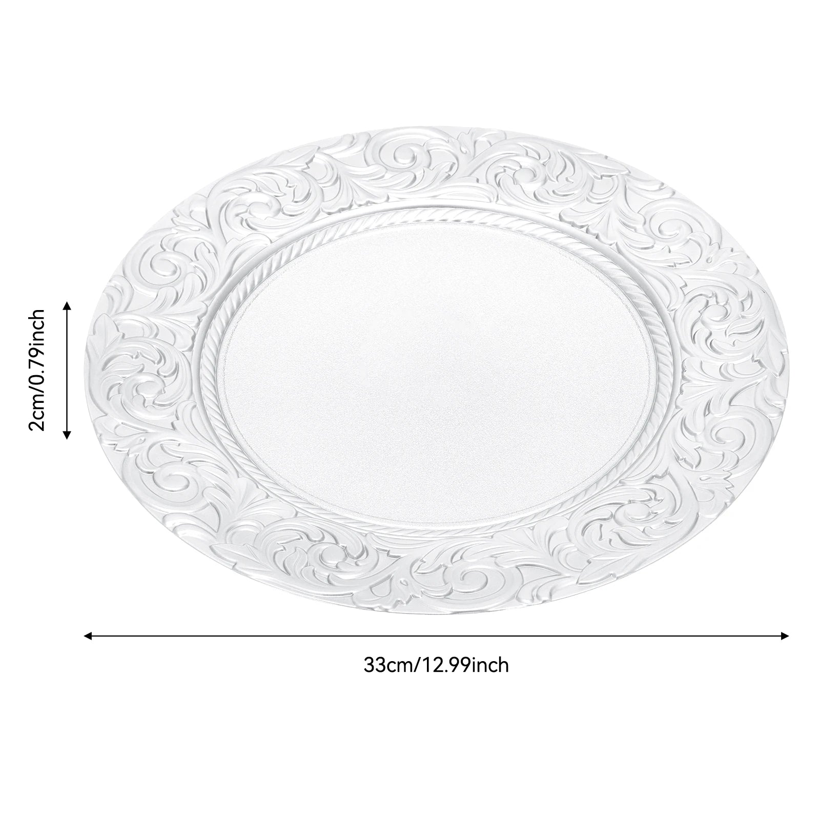 - Charming Appearance: Classic round shape with an elegant silver color and beautifully embossed rim that pairs seamlessly with other dinnerware for a refined, coordinated look.