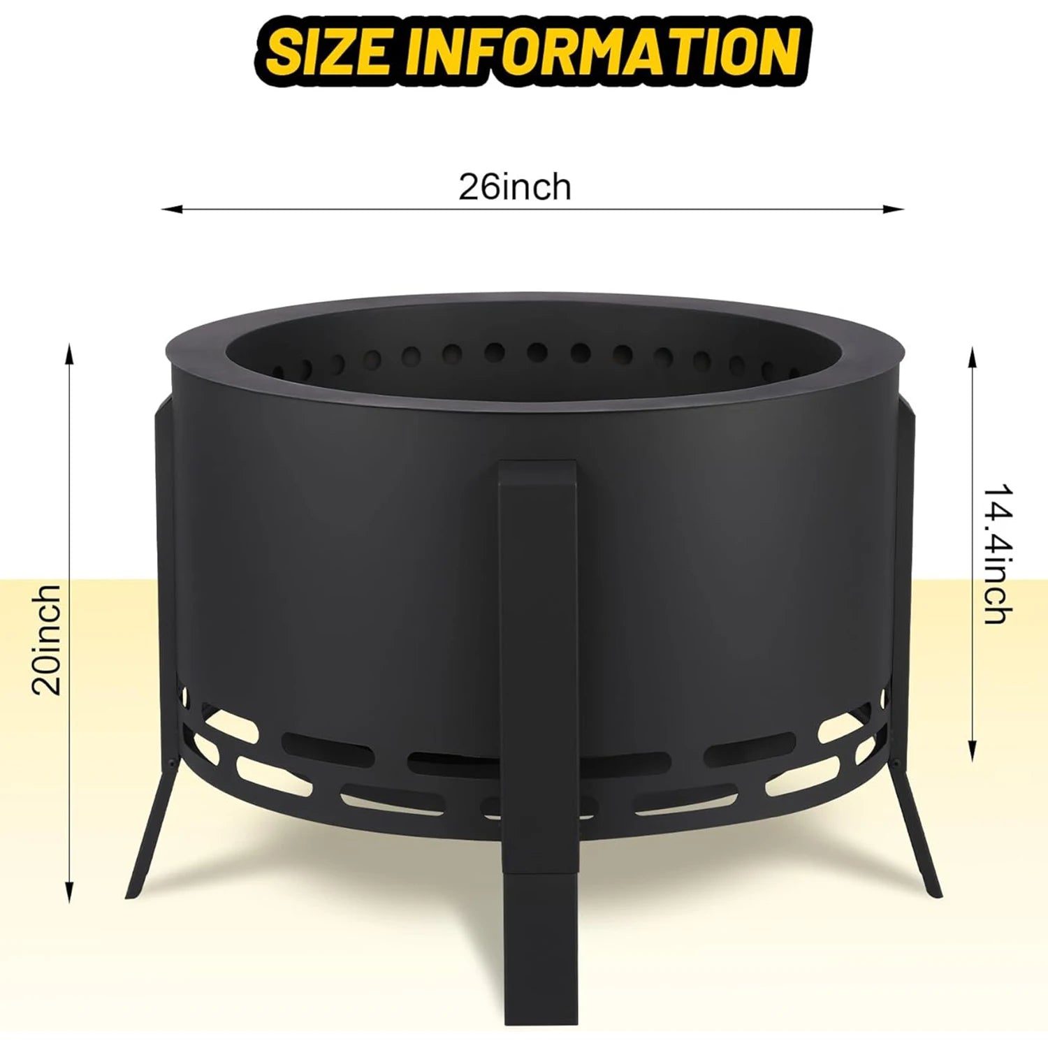 Designed for durability and versatility, this 26-inch smokeless fire pit is perfect for backyard gatherings, camping trips, and outdoor entertaining. Enjoy a cleaner flame, flexible fuel options, and effortless setup with a portable, sturdy footprint that stores neatly when not in use.