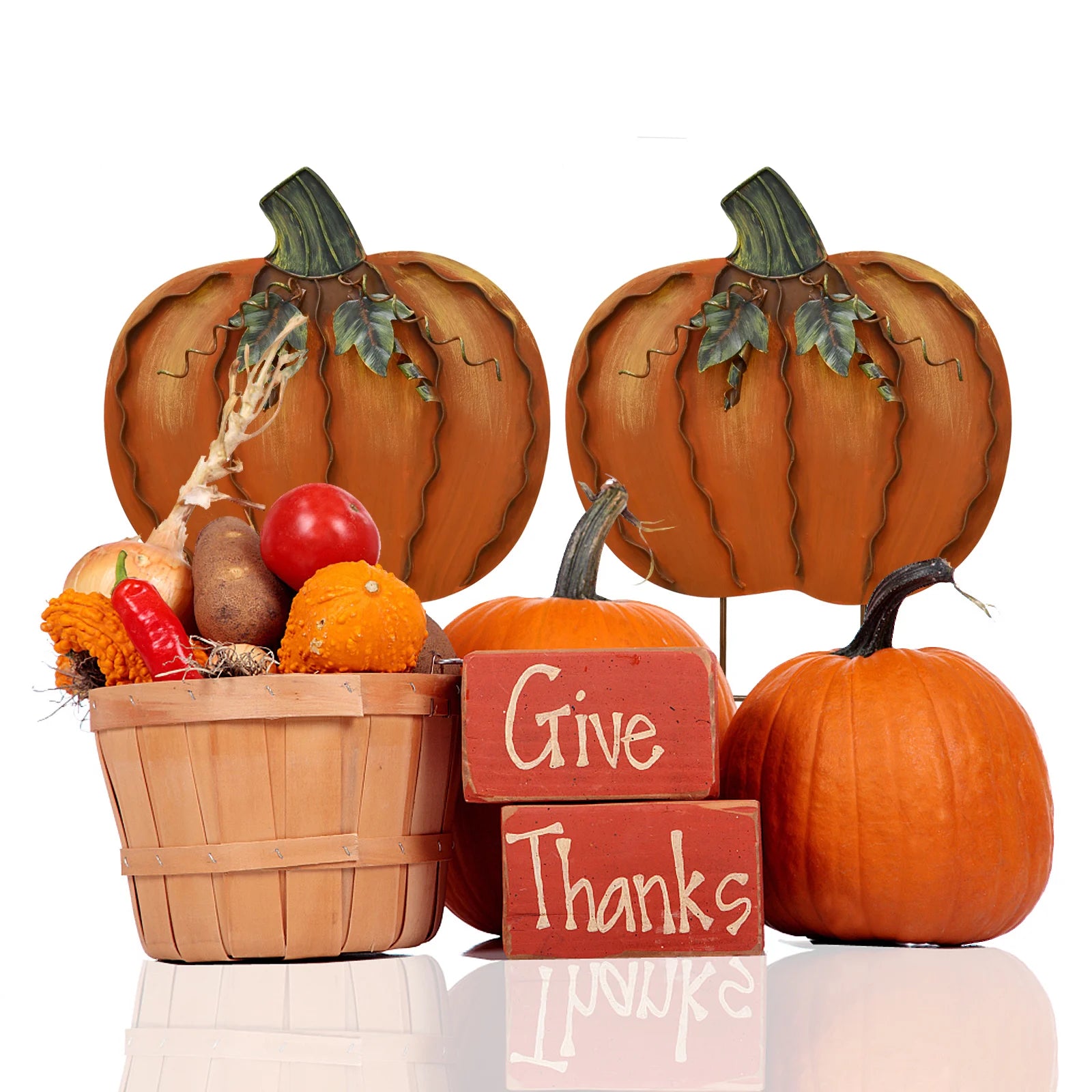 Enhance curb appeal and create welcoming seasonal atmosphere with these durable, easy-to-use pumpkin garden stakes. A timeless addition to your outdoor décor that continues to delight year after year.