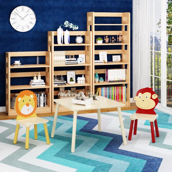 3-Piece Kids Table and Chairs Set, Wooden Play Activity Furniture for Toddlers (Lion & Monkey Design)