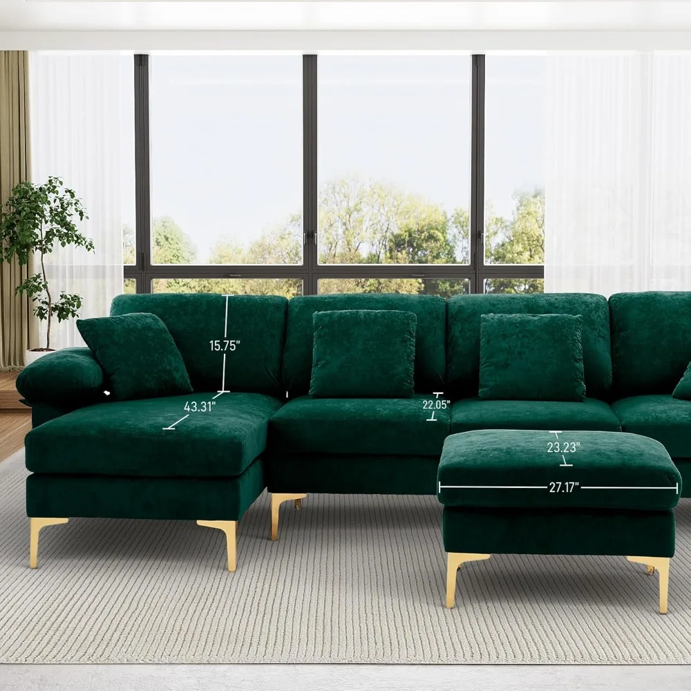 "4-seat u-shaped velvet sofa set with chaise and ottoman for living room"
