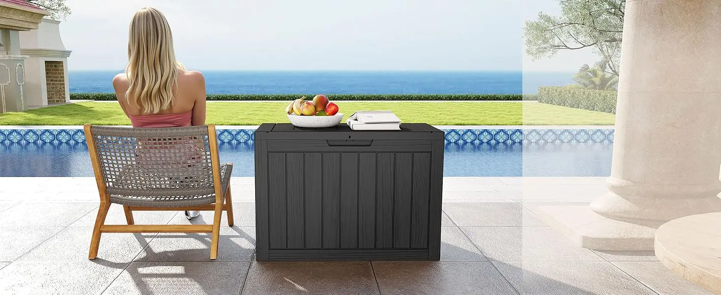 ALL-WEATHER PROTECTION: The wind and rain-resistant aggregate resin with a wood grain pattern combines aesthetics and practicality, providing this deck boxes outdoor waterproof, UV-resistant, fade-resistant, rust-resistant, peel-resistant, and warp-resistant protection. Almost maintenance-free for years to come