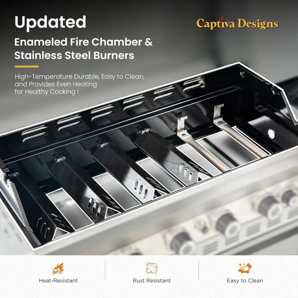 Upgrade outdoor cooking with the Six Burner Propane Grill With Side Burner Grates — a versatile gas grill designed for backyard mastery. Six high-performance burners give you precise heat control for searing, roasting, and simmering, while a dedicated side burner expands your cooking options for sauces, sides, or vegetables.