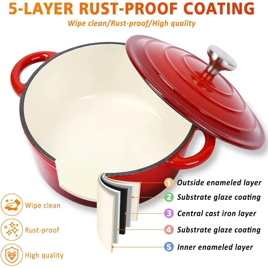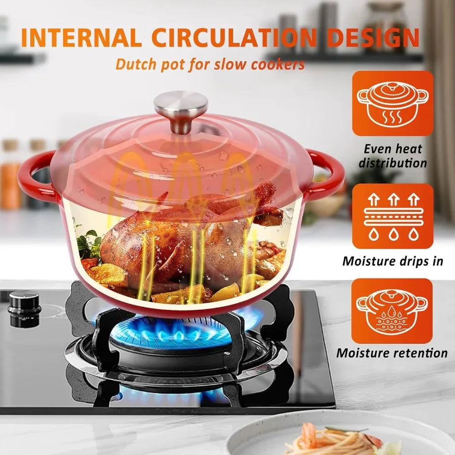 8 Piece Enameled Cast Iron Cookware Set With Dutch Oven delivers professional-quality cooking performance in a versatile, go-anywhere package. Crafted in Mainland China by Hign-concerned Chemical, this 8-piece collection pairs a durable enamel-coated cast iron Dutch oven with a selection of essential pots and pans to cover everyday cooking tasks.