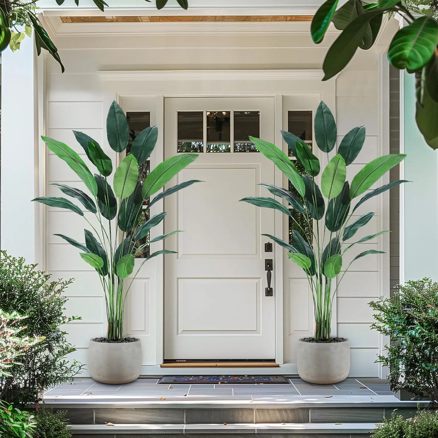 【Safe Materials】All materials used in our artificial plants are flame retardant treated, ensuring safety even when placed in enclosed environments. Through multiple layers of packaging and cardboard box transport, this artificial plant will maintain its height, color, and shape for years without the need for trimming or styling, ensuring it remains beautiful and creates a tropical/natural atmosphere in your living space.