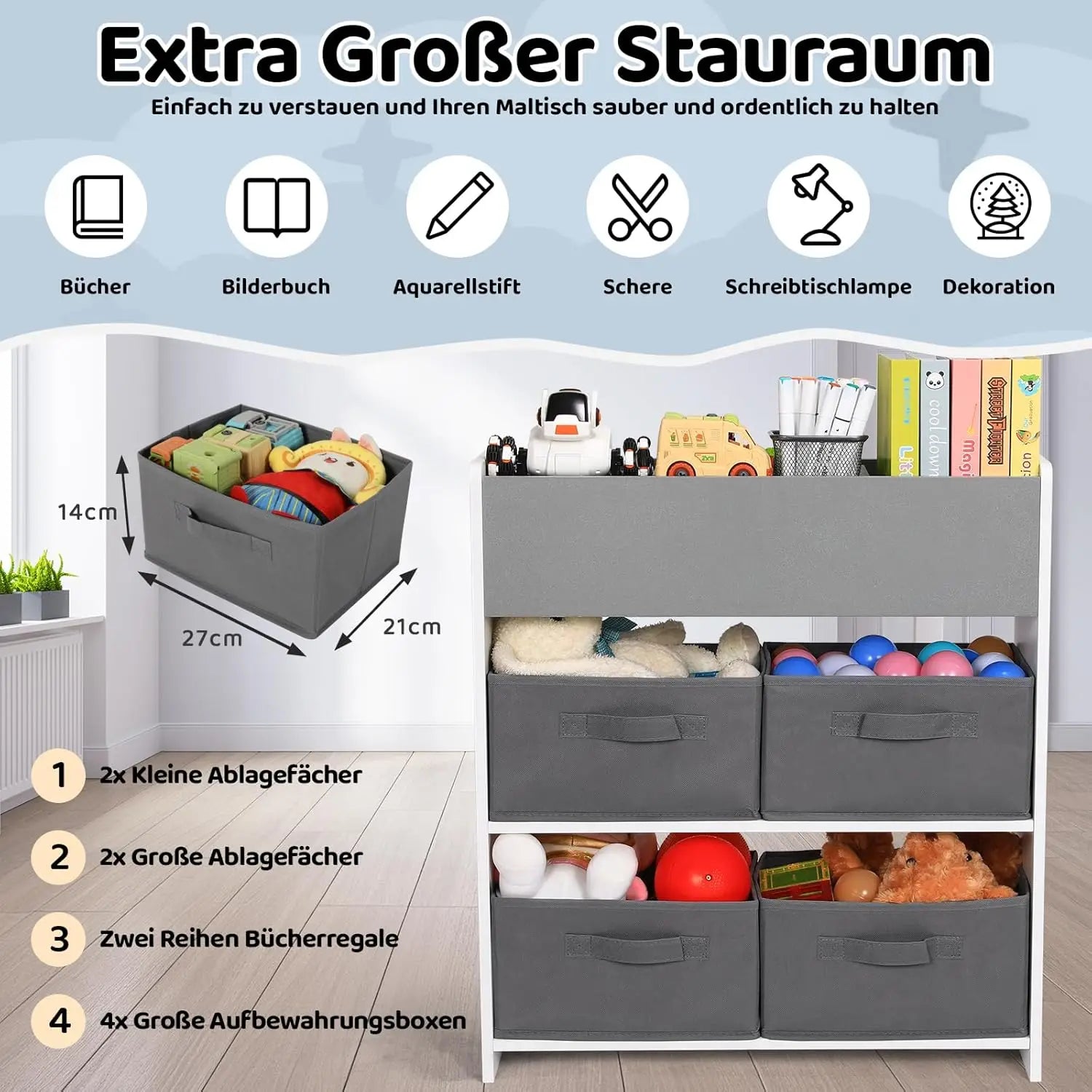 Plenty of Storage Space: Kids table and chair set comes with a small bookshelf, storage shelf as reinforced legs on one side, and comes with 4 removable storage frames and top compartments for art supplies, toys and books, To stay organized and create a neat play area that promotes creativity and focus.