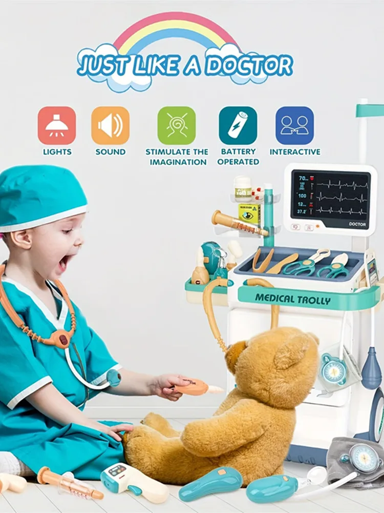 Children's Doctor Set - 26 Pretend Medical Station Toy Set With Play Stethoscope And Medical Equipment - Doctor Role Play Gift,