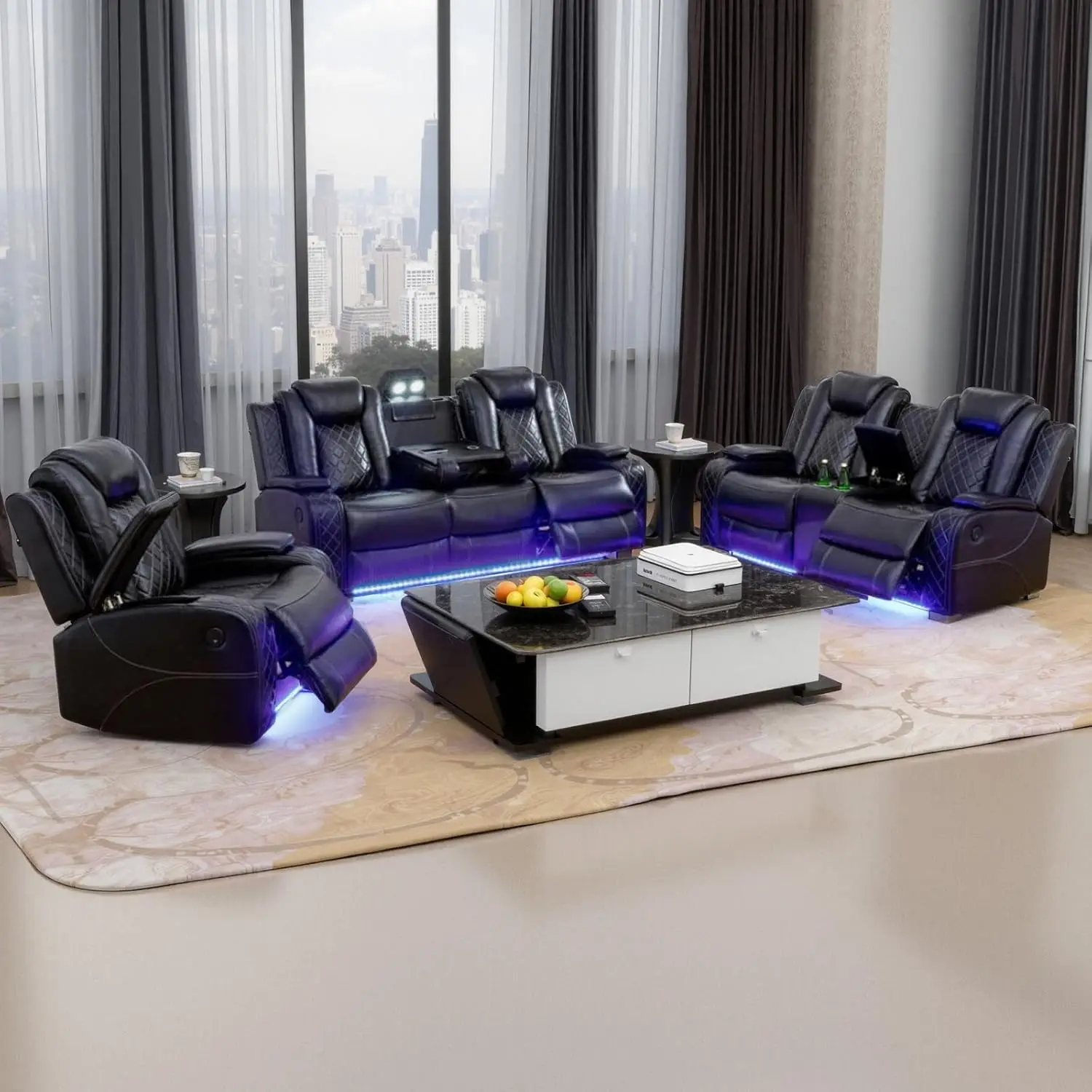 Hot salesPower Living Room Furniture Sets,Electric Recliner Chair with LED Light,Sectional Sofa Loveseat with Wireless Charging