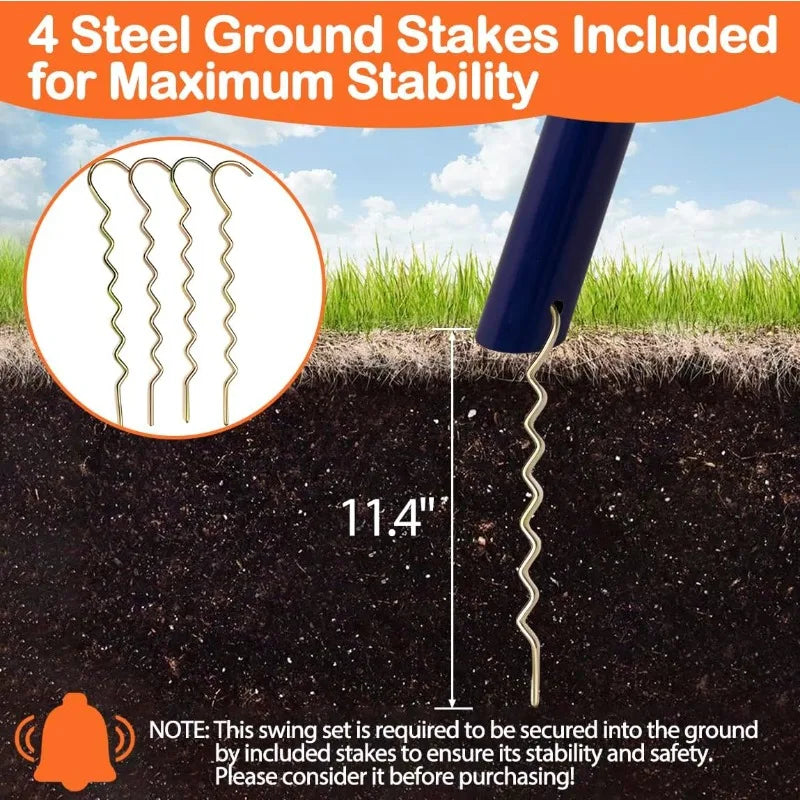 - All-in-One 6-in-1 playset: 2 sturdy swings, a climbing ladder, climbing nets, a trapeze bar, and a basketball hoop—all integrated into one durable frame.