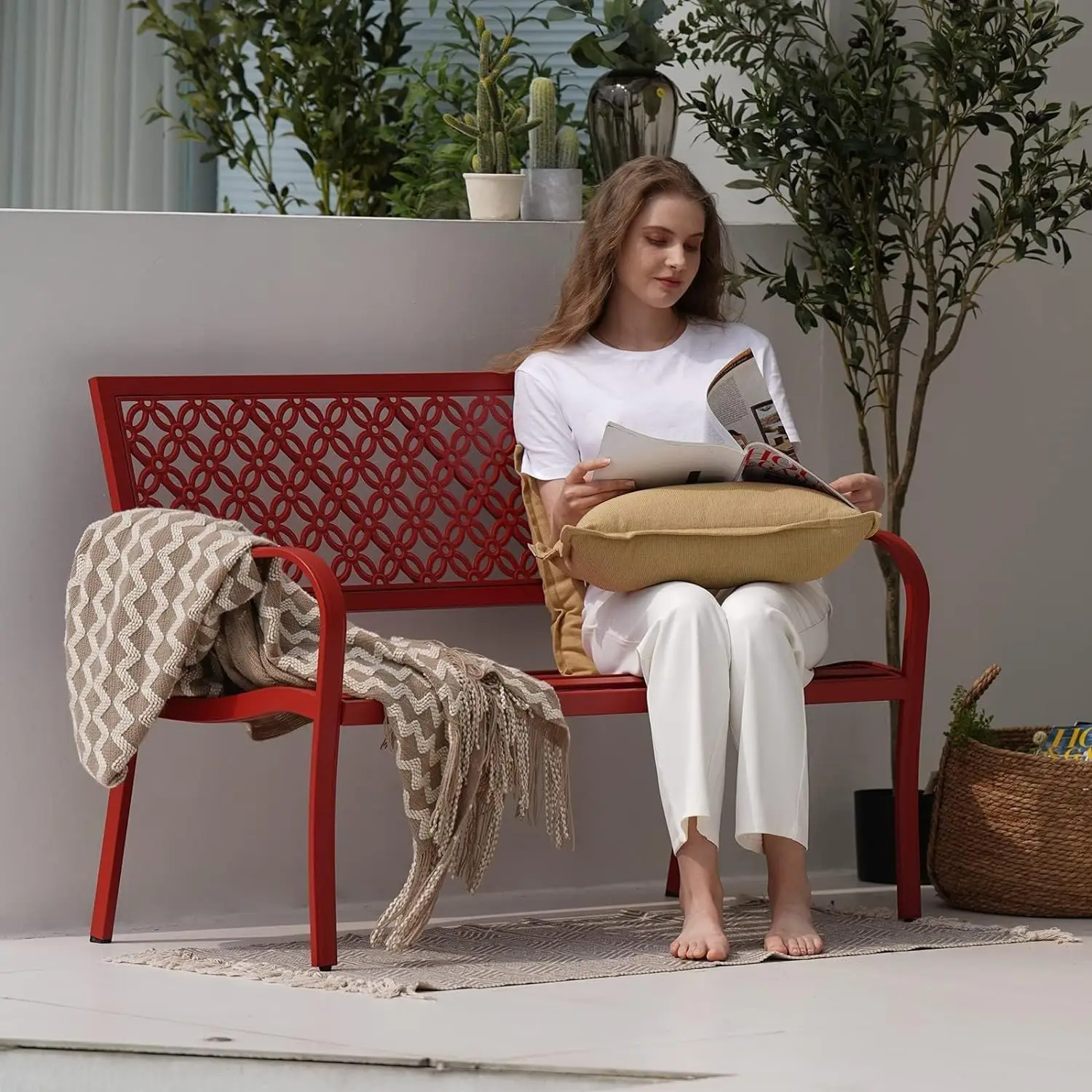 Strong Structure: Built with a thick steel frame and reinforced armrests/backrest, this patio bench supports up to 660 lbs, offering sturdy and comfortable seating.