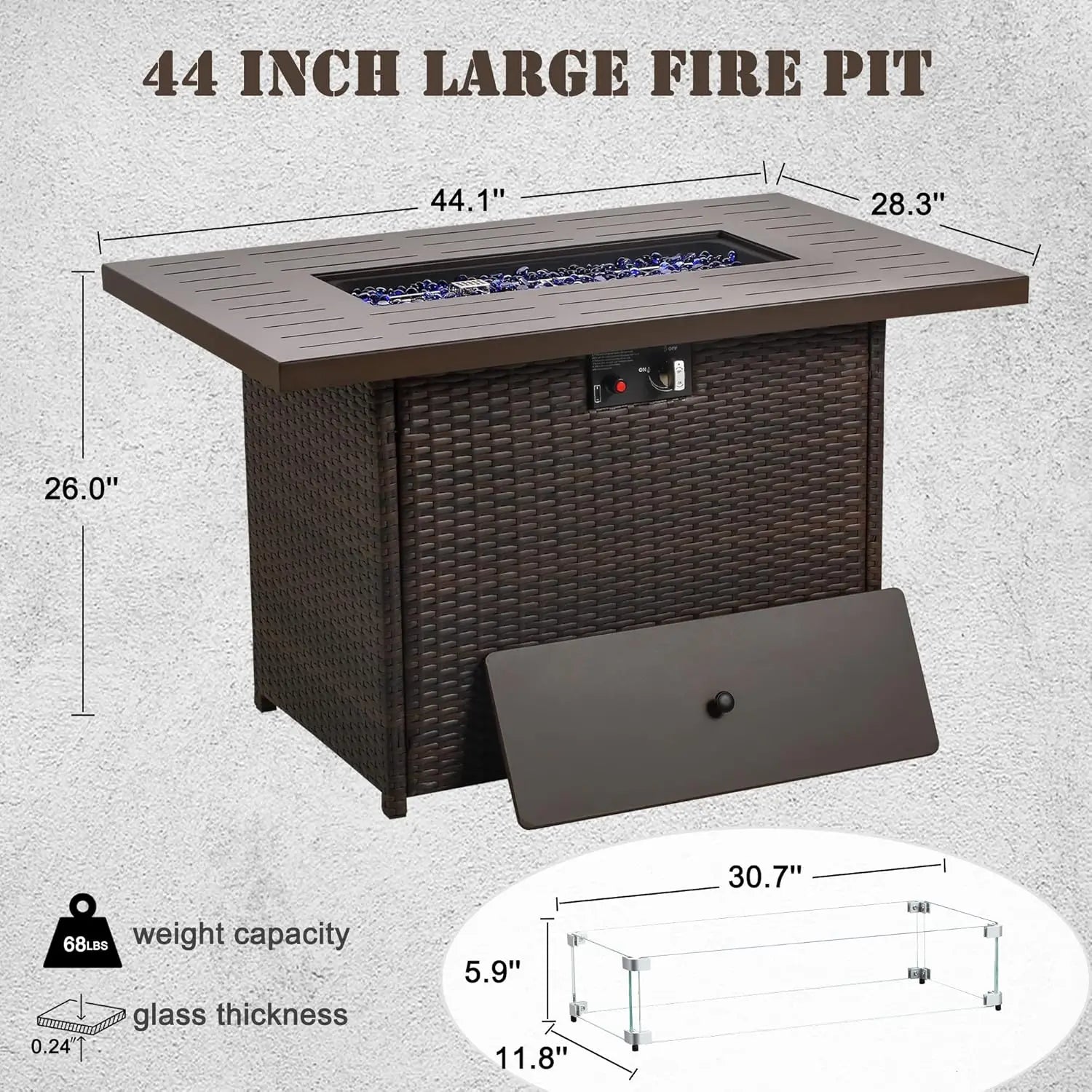 - 55,000 BTU rectangular fire pit table delivers ample heat to extend your outdoor evenings with family and friends.