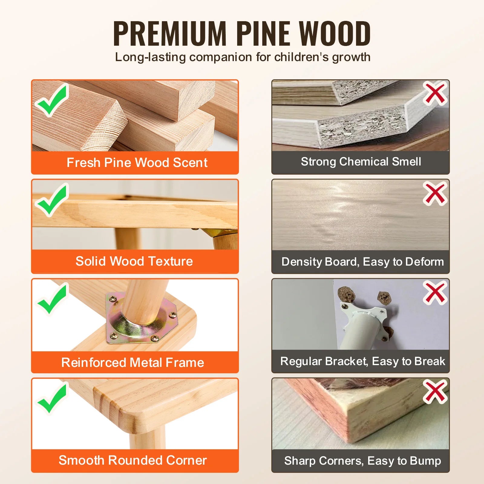 Crafted from high-quality natural pine wood, this sensory table is both durable and child-safe. Its smooth, polished finish with no sharp edges ensures safety, while the sturdy 1-inch thick tabletop can support up to 66 lbs (30 kg), growing with your child’s needs..