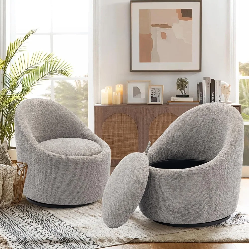 - ACCENT CHAIR WITH STORAGE: Featuring a compact and elegant build, our swivel accent chair includes a concealed storage compartment ideal for keeping essentials close. Perfect for organizing small items like books, blankets, or accessories without cluttering your space