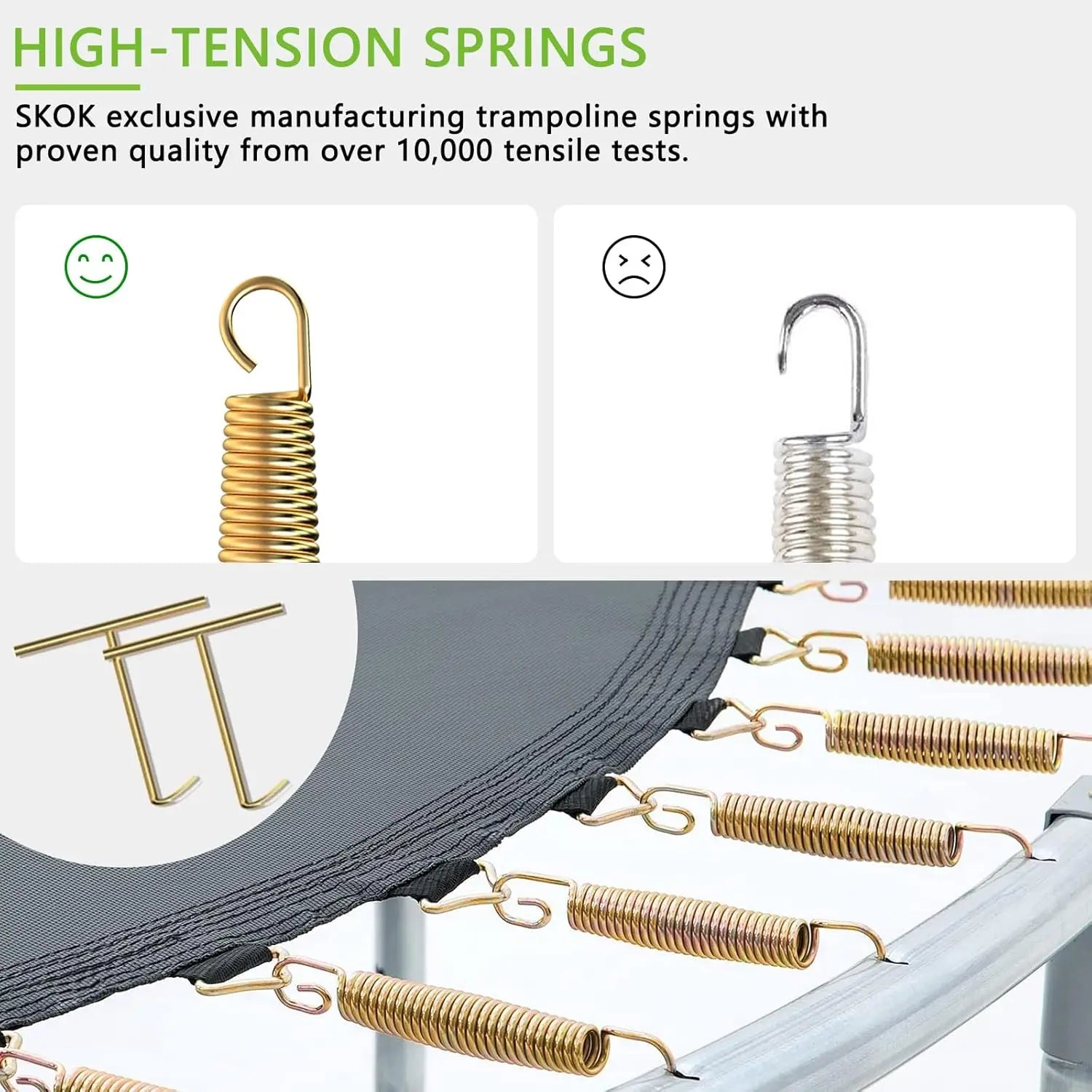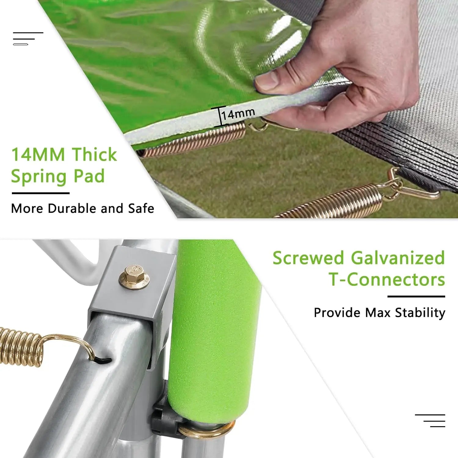 🏃\u200d♂️【Higher Quality Springs and Jumping Mat】Bounce is fantastic with springs and mat. 8ft trampoline has 42pcs heavy galvanized 145mm springs provide rust resistant and superior bounce. High density jumping mat(pp material) is fade-resistant and wear-resistant which can hold up to 400lbs.