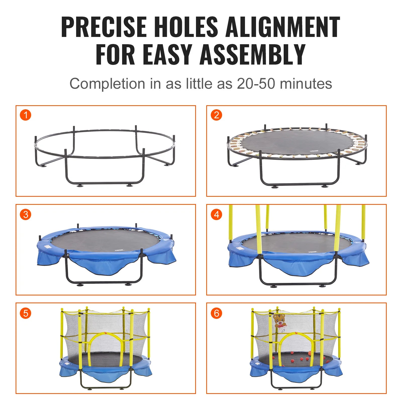 Effortless Assembly: Setting up the exercise trampoline is a breeze and requires only one adult. Follow the instructions, assemble the frame, and match the holes and threads precisely. In no time, your child will be enjoying hours of play.