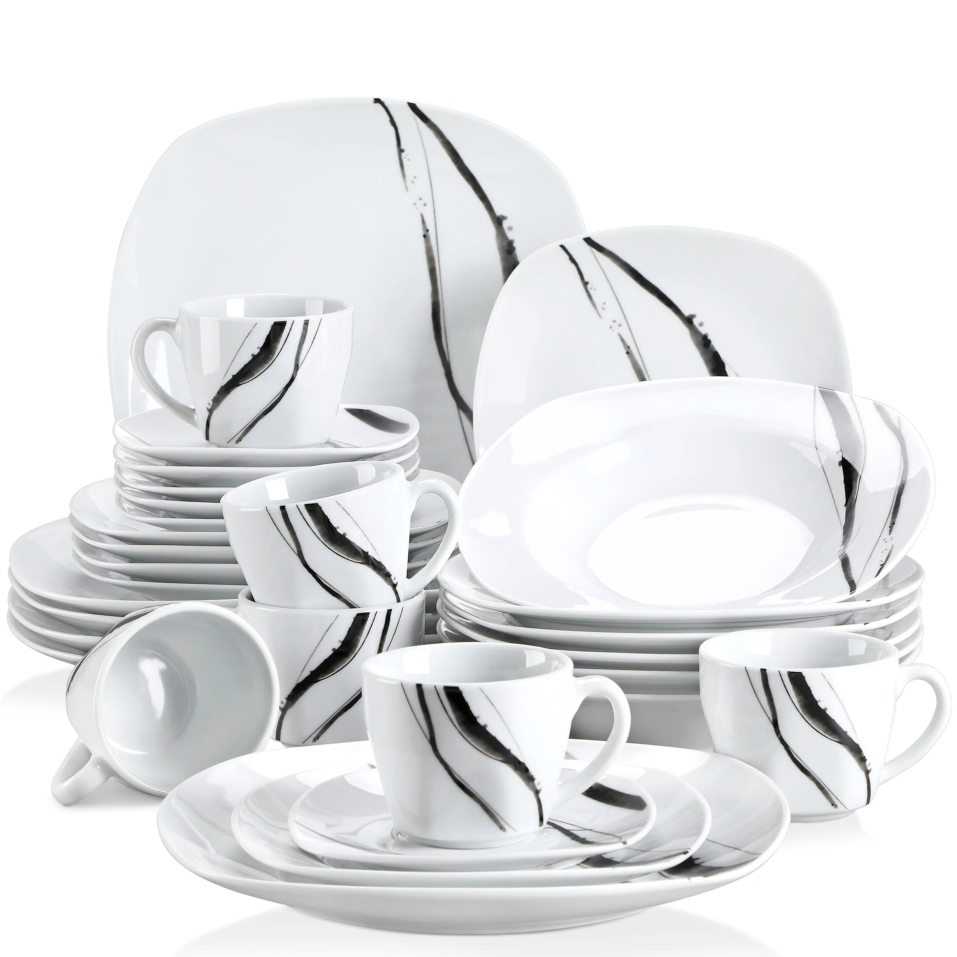 VEWEET Teresa Porcelain Dinner Set 30 And 60 Piece With Cups And Saucers